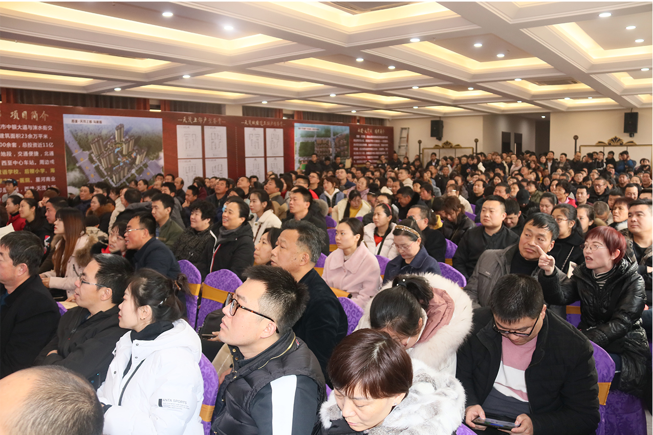 今天雖然天氣寒冷,開盤時間還未到,一支百人隊伍就已早早守候在宴會廳內,距離開盤還有一個小時,偌大的宴會廳早已人滿為患,大家早早趕來生怕與心儀房源失之交臂,眾多購房者翹首以盼,焦急地等候開盤儀式,共同見證西建·天茂城、天茂上郡開盤的盛況。