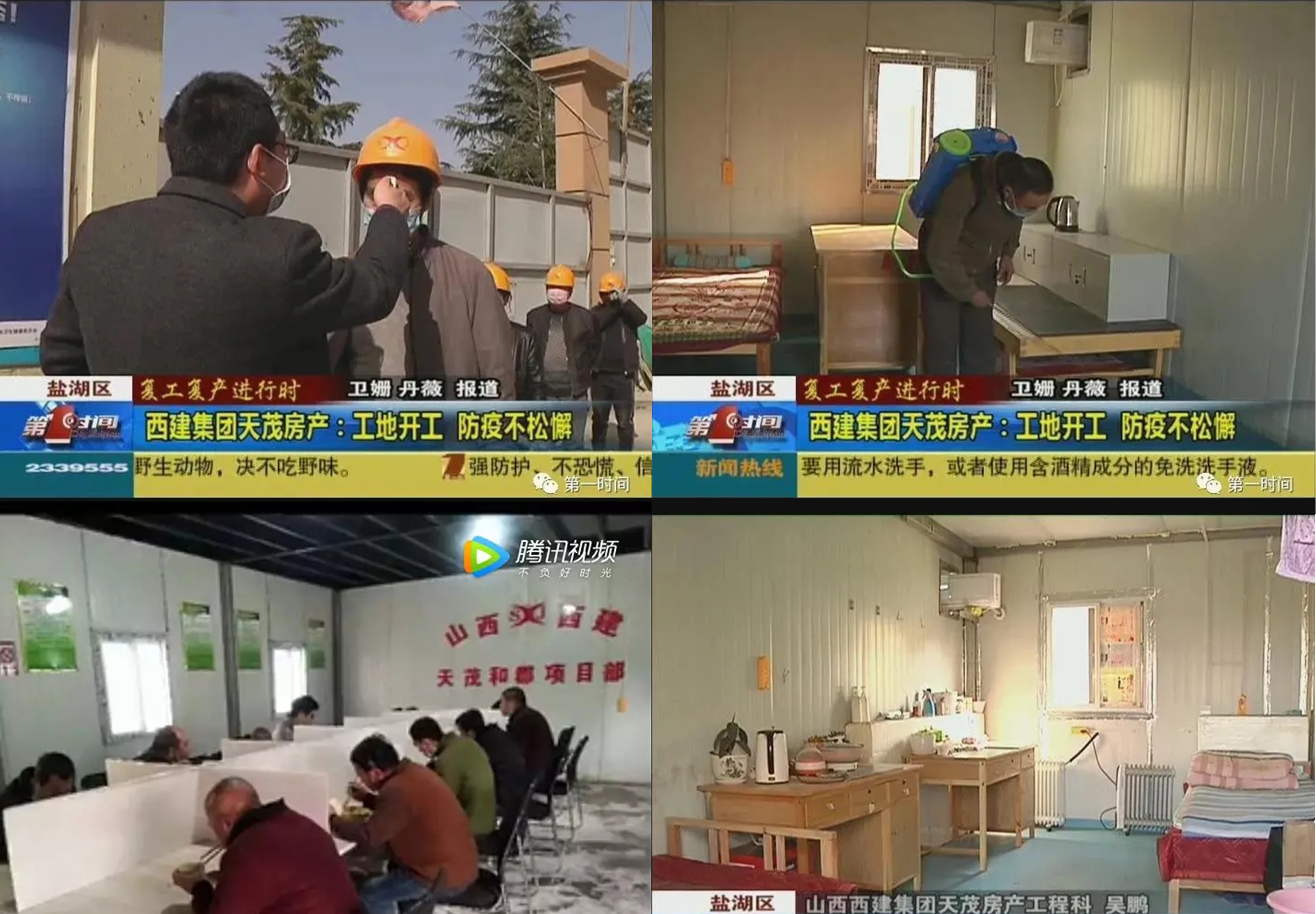 各個施工現場,每天對所有的施工人員進行體溫檢測、一天三次的全面消毒和登記工作;在復工前,企業組織所有管理人員和一線施工人員到醫院進行了體檢;為了避免工人吃飯過程中的交叉感染,采取分餐制,將每個工人吃飯全部隔離開來,每次固定12個人吃飯,輪流吃飯,避免人多密集;住宿方面,將原來的四人宿舍改為雙人宿舍,并且床與床的間距大于1.5米,避免交叉感染。在各個項目施工中堅決做好“兩手抓、兩手硬”,統籌安排疫情防控和復工生產各項工作。