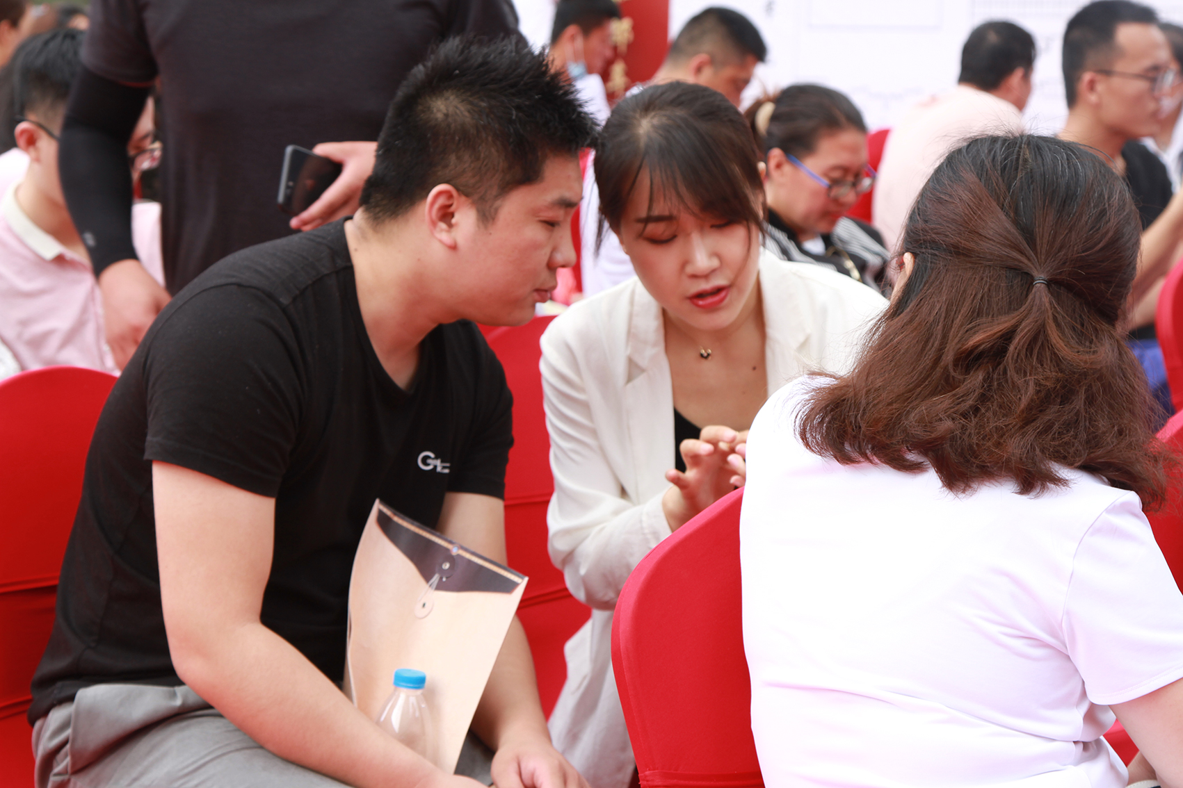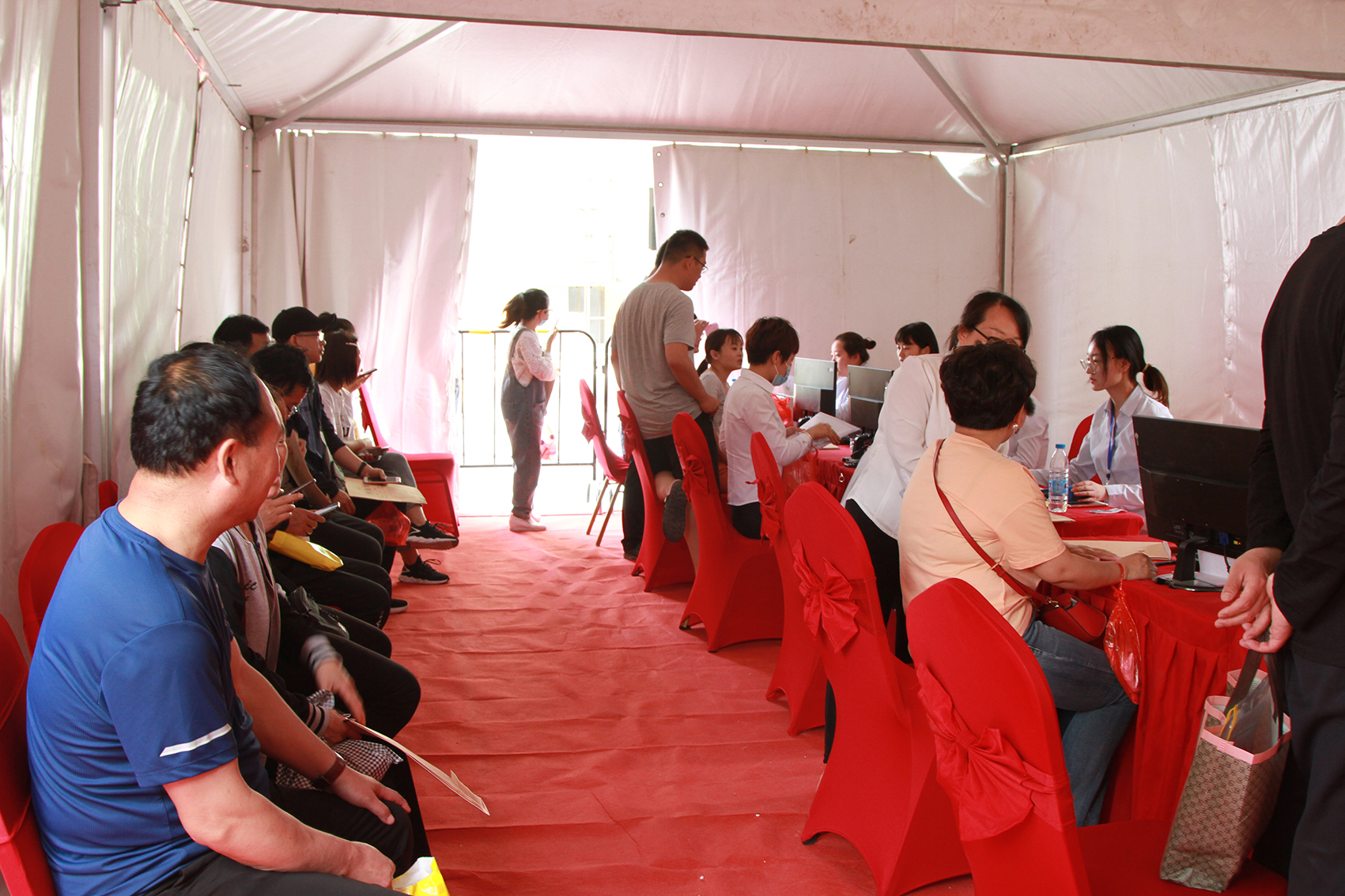 銷售現(xiàn)場(chǎng)可以用人聲鼎沸來形容,距離活動(dòng)開始還有半小時(shí),現(xiàn)場(chǎng)早已座無虛席,經(jīng)過之前車位開盤的熱潮,儼然這里已成為全城焦點(diǎn)。