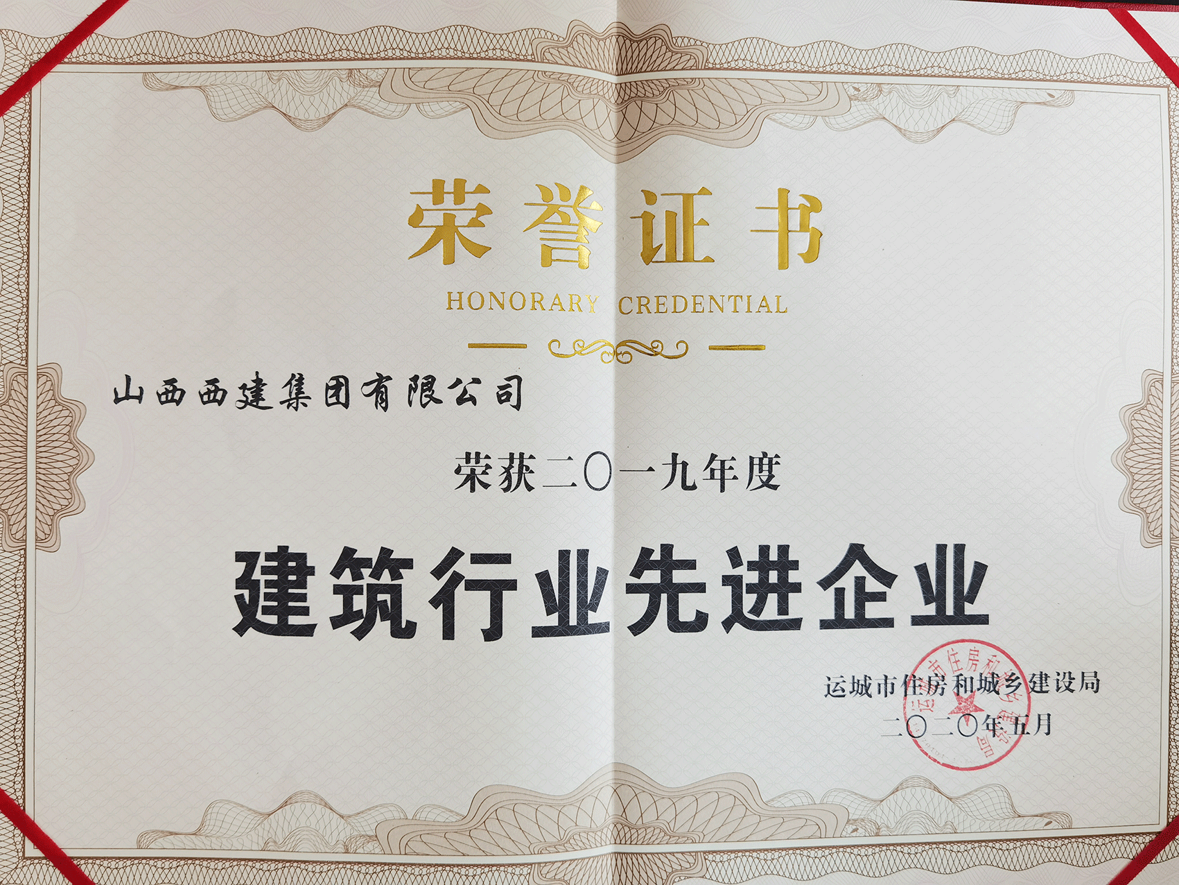 ▲山西西建集團有限公司榮獲“2019年度建筑行業先進企業”