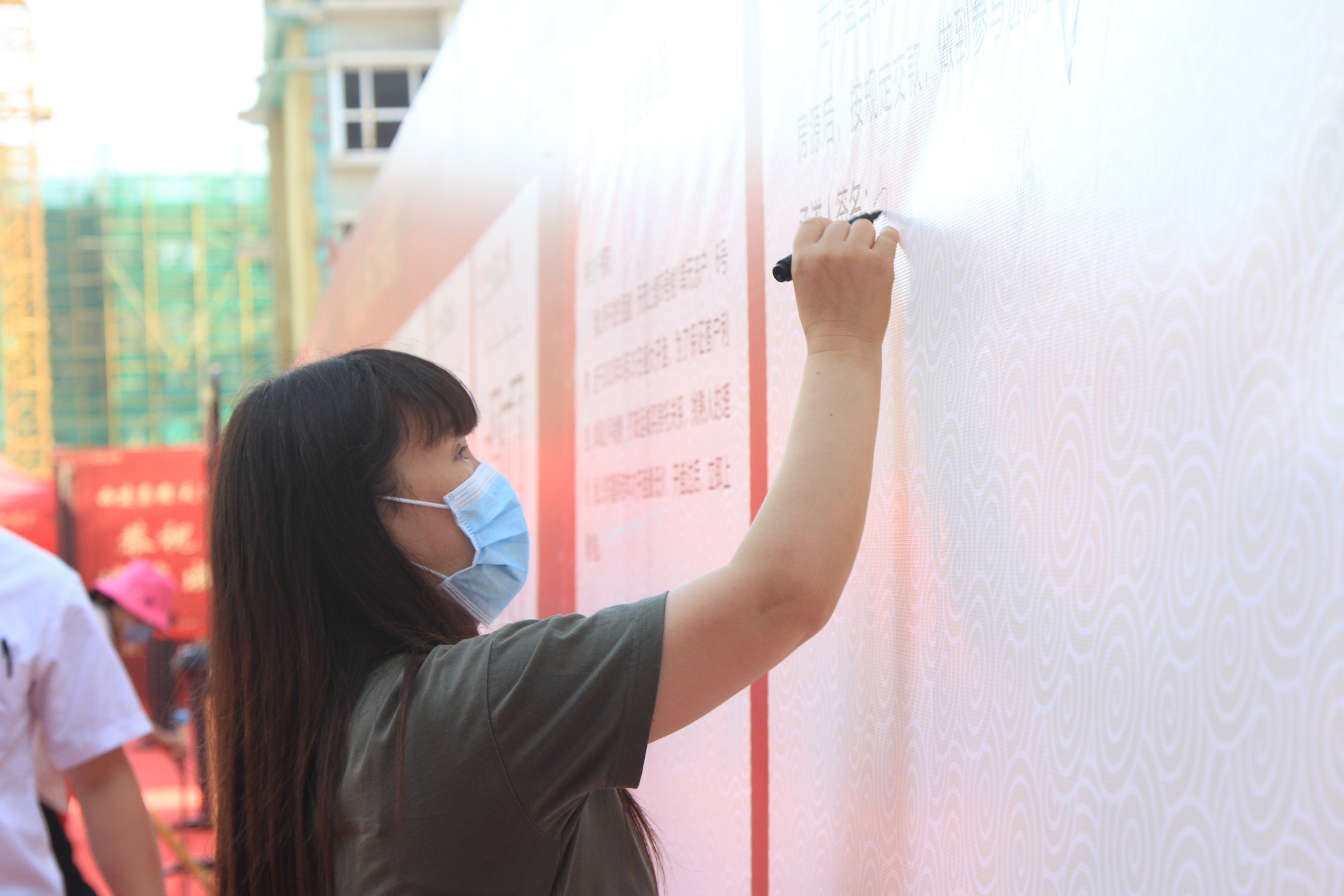 雖然天氣炎熱,但依然抵擋不住大家的熱情,開盤時間還未到,一支百人服務大隊整裝待發,早早守候在天茂上郡中央廣場會場內,靜待尊貴的客戶蒞臨。距離開盤還有一個小時,偌大的會場早已人聲鼎沸,大家早早趕來生怕與心儀房源失之交臂,眾多購房者翹首以盼,焦急地等候開盤儀式,共同見證西建·天茂上郡開盤的盛況。