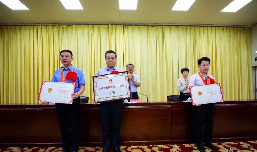 ▲劉忠森榮獲“山西省脫貧攻堅先進個人”(左一)