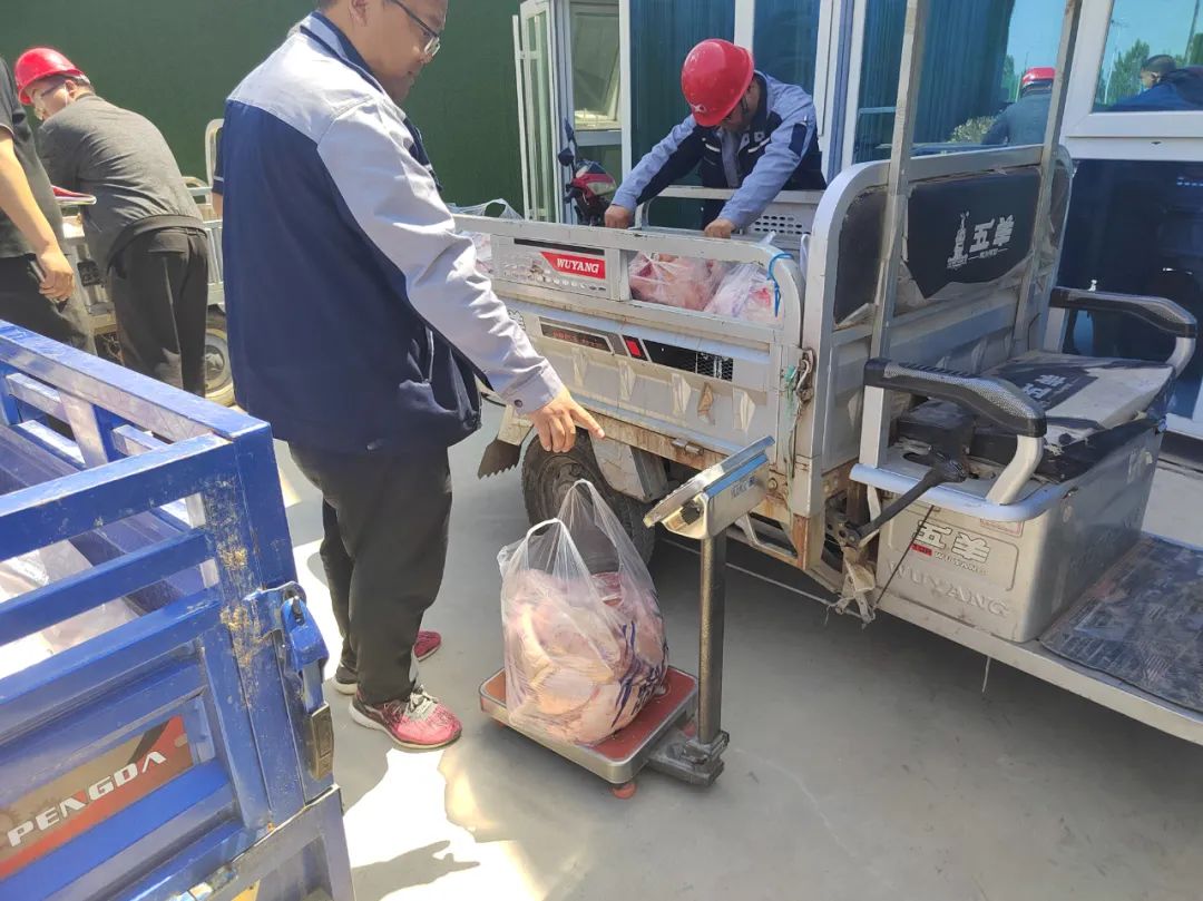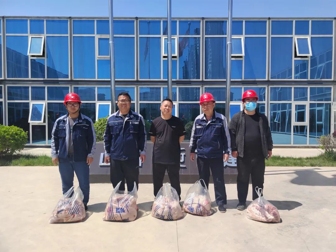 據悉,本次勞動節,天茂城分公司共為兩千多名農民工兄弟送去大肉慰問,用以改善伙食,讓大家感受到家的溫暖。