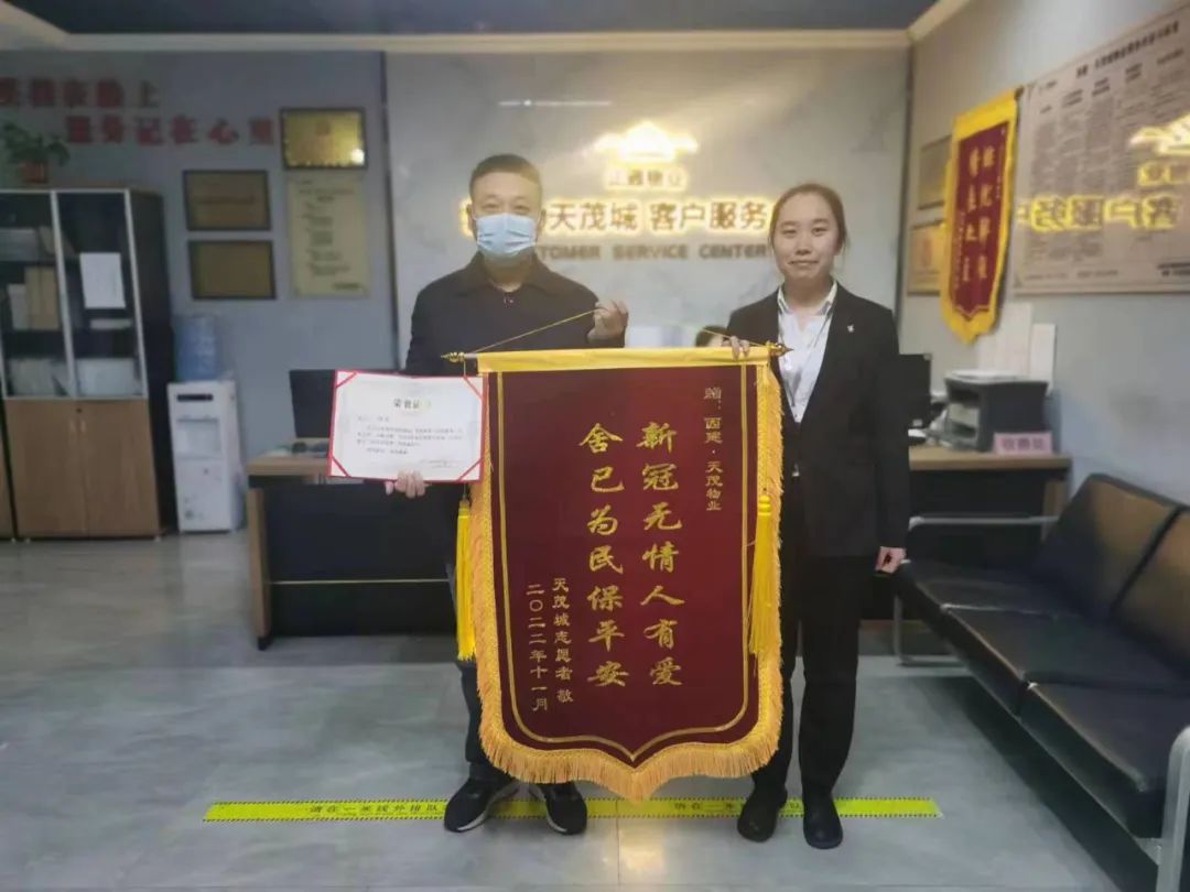 摘要:10月份疫情封控解除后,天茂城、天茂上郡、天茂和郡分別收到了業主們送來的錦旗,同時西建正通物業也為疫情期間積極奉獻的業主朋友送上最美志愿者證書及精美紀念品。