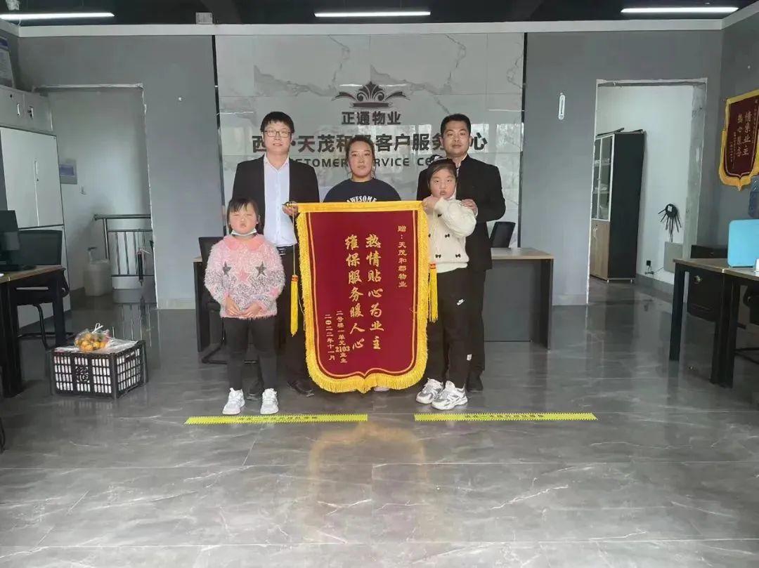 10月份疫情封控解除后,天茂城、天茂上郡、天茂和郡分別收到了業主們送來的錦旗,同時西建正通物業也為疫情期間積極奉獻的業主朋友送上最美志愿者證書及精美紀念品。下圖為業主們送來的部分錦旗。
