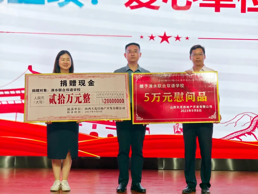 西建·天茂房產(chǎn)為涑水聯(lián)合雙語學(xué)校捐款捐物達25萬元