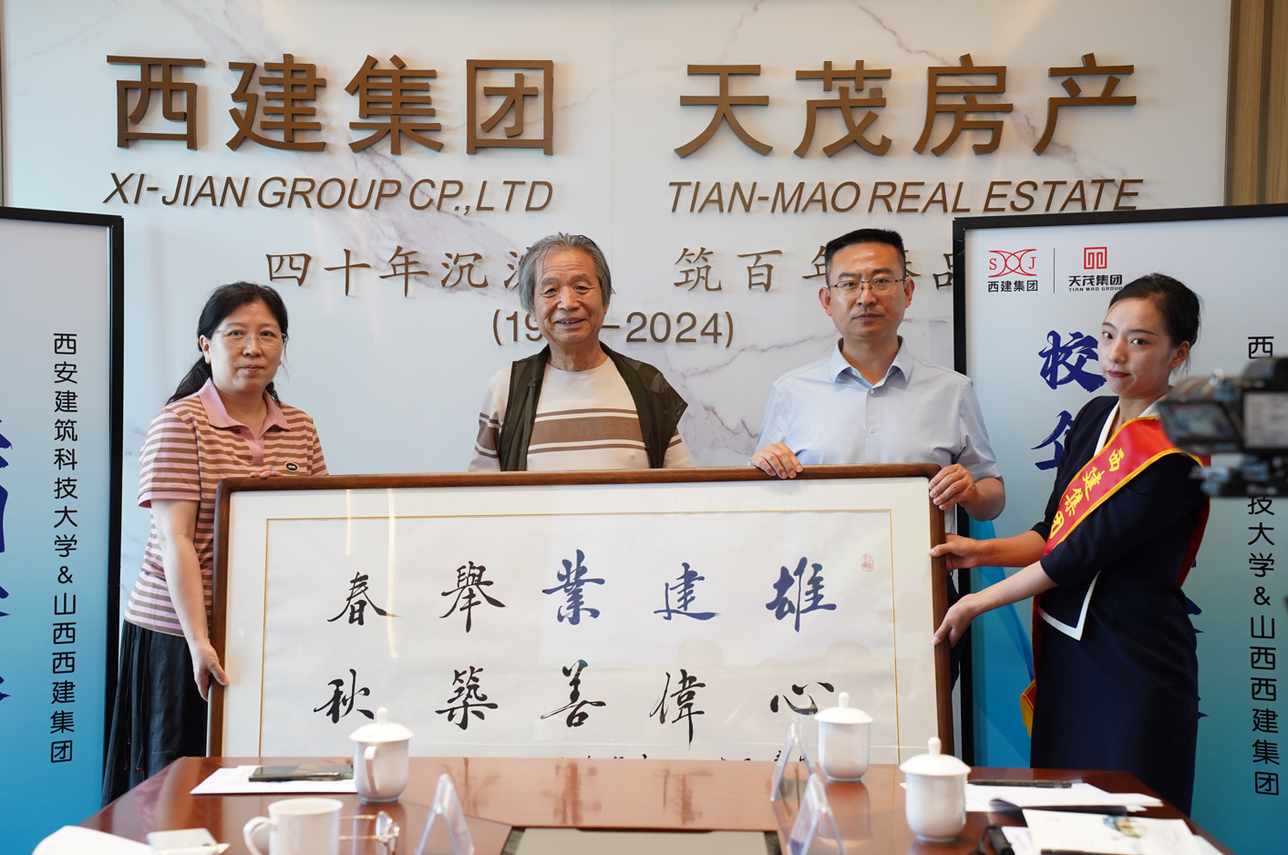 2024年3月份,西建集團(tuán)天茂房產(chǎn)總經(jīng)理劉忠森,向母校西安建筑科技大學(xué)“紅燭”基金捐款10萬元。為了表達(dá)對校友的感謝,及共促校企合作新征程。2024年5月30日,西安建筑科技大學(xué)副校長董群雁一行深入走訪校友劉忠森企業(yè)西建集團(tuán)。西安建大老教授協(xié)會會長王齊銘,西安建大離退休辦公室主任樊宏斌,西安建大管理學(xué)院黨委副書記、副院長周琳,西安建大退休辦黨委副書記張俏,西安建大教育基金管理部部長張廣敏,西安建大老教授協(xié)會秘書長趙安啟,西安建大離退休辦公室主任、離休科科長陳琳,西安建大老教授協(xié)會劉炳南教授,西安建大老年大學(xué)高鑫等領(lǐng)導(dǎo),及教授隨同調(diào)研。原運城市委常委、人大常委會副主任王正風(fēng),運城市住建局副局長郭強,西建集團(tuán)天茂房產(chǎn)總經(jīng)理劉忠森接待陪同。