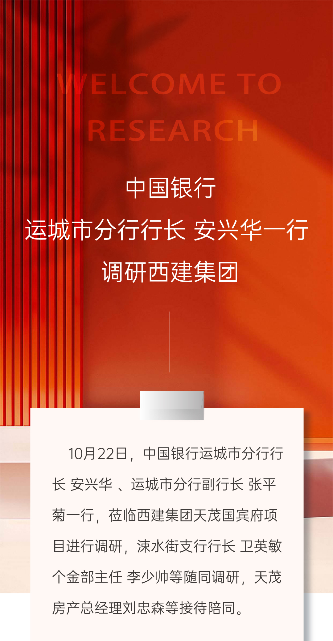 中國銀行運城市分行行長安興華一行調研西建集團